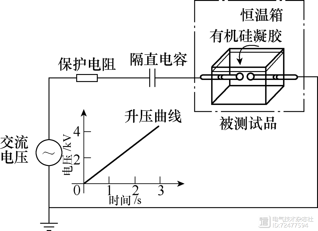 研究人員測試了有機硅凝膠的熱特性,分析了溫度對有機硅凝膠工頻耐電特性的影響機制。溫度升高時,有機硅凝膠的自由體積增大,分子鏈段運動加??;且有機硅凝膠內(nèi)部載流子遷移率增大,漏電流增加,故溫度升高后,有機硅凝膠的擊穿電壓降低。